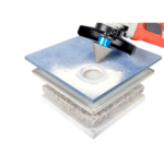 - Het afschuinen van de binnenkant van een gat in een keramische tegel doet u met een conische diamant boor frees van Montolit.
