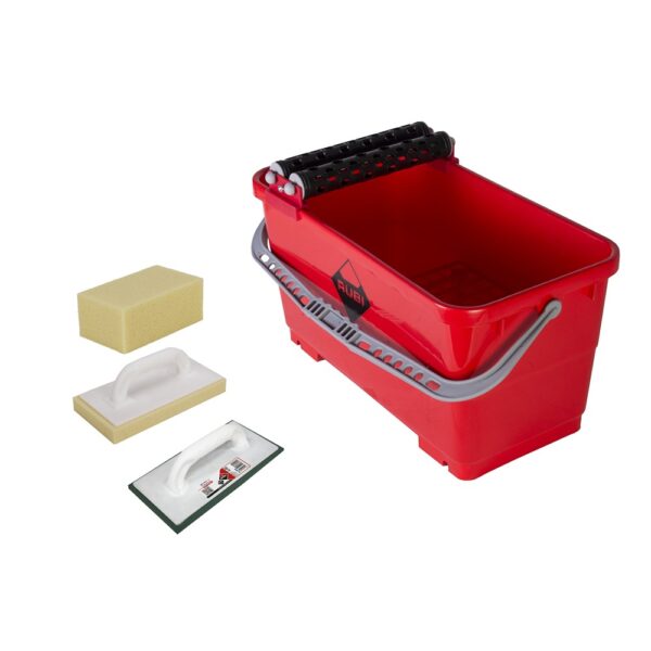 Complete set voor het voegen van tegels en het schoonmaken na het voegen. Met deze set kunt u direct beginnen met de voegklus. Met de grote, slijtvaste Rubi voegspaan kunt u eenvoudig voegmiddel inwassen. Het schoonmaken van het tegelwerk doet u vervolgens met de schoonmaaksponzen en sponsbak. Heeft een maximale inhoud van 24 liter, en een grootte van 55 x 32 x 27 cm.
