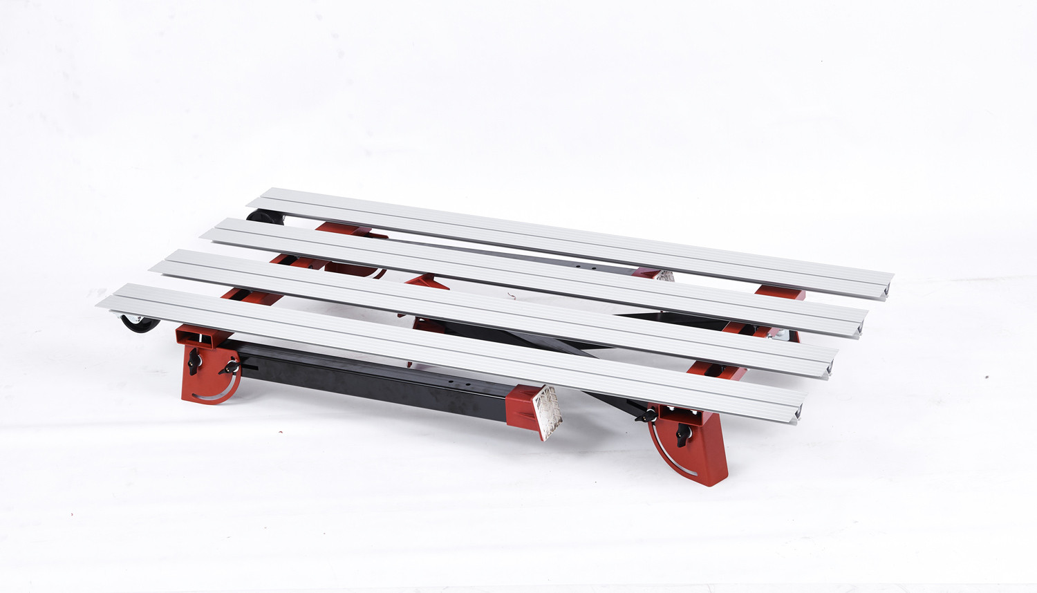 Het schuifsysteem van de dwarsbalken (die de aluminium profielen vasthouden) is verbeterd, waardoor de tafelbreedte veel vloeiender en gemakkelijker kan worden aangepast.